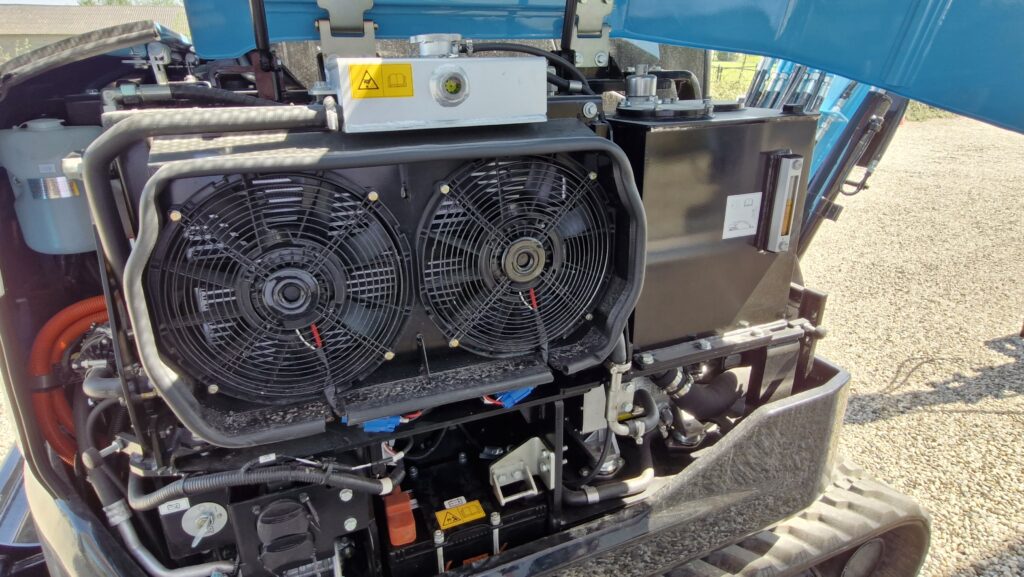De SY35E kan tot 7 uur continu werken op een volledige acculading, afhankelijk van de werkzaamheden en hydraulische belasting.