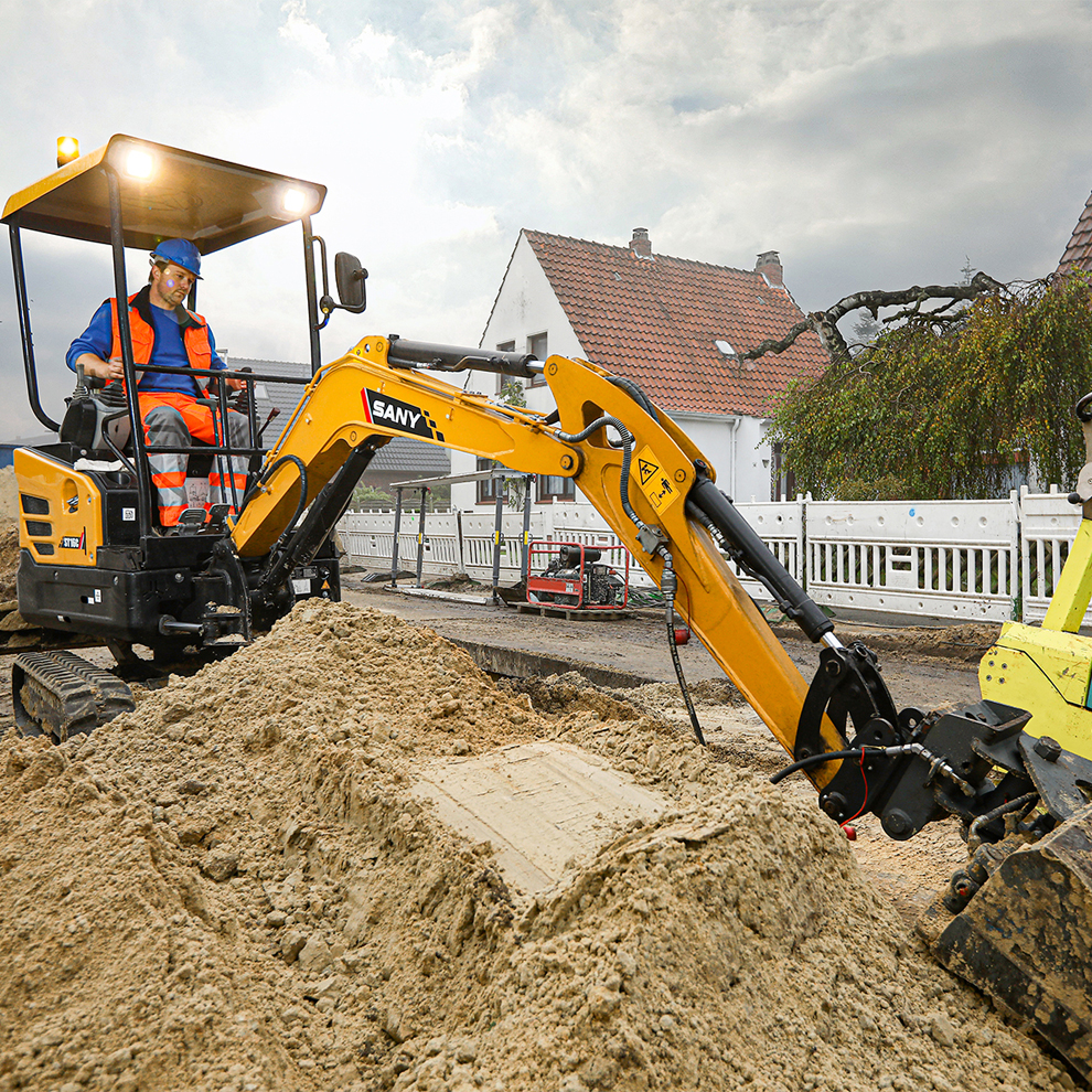 De SANY SY16C is ons kleinste model en een echte kampioen in beperkte ruimtes. Deze minigraafmachine biedt uitstekende prijs-kwaliteit voor aannemers in de bouw, groenvoorziening en nutssector. Dankzij de gereduceerde achteroverhang, het uitschuifbare onderstel en de verlengbare dozerbladzijstukken beweegt de SY16C moeiteloos door smalle doorgangen, hekken en deuropeningen.