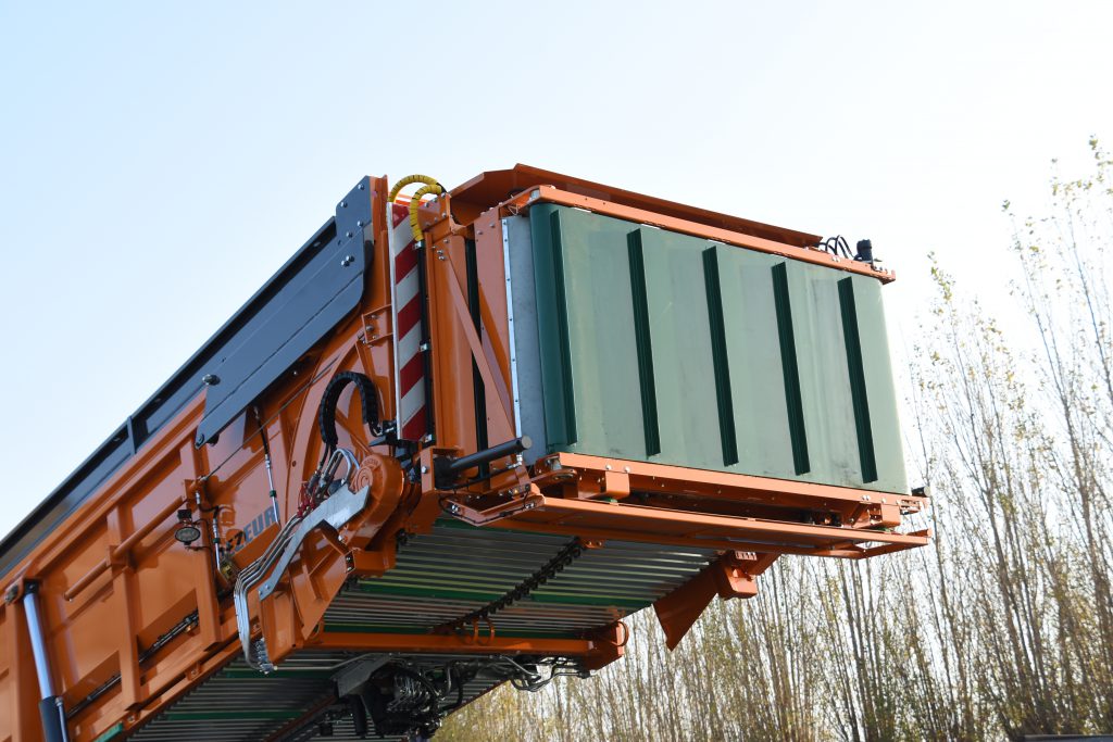 Minimale valschade. 2 transportbanden lossen het product diep in de laadbak waardoor de valhoogte minimaal is.